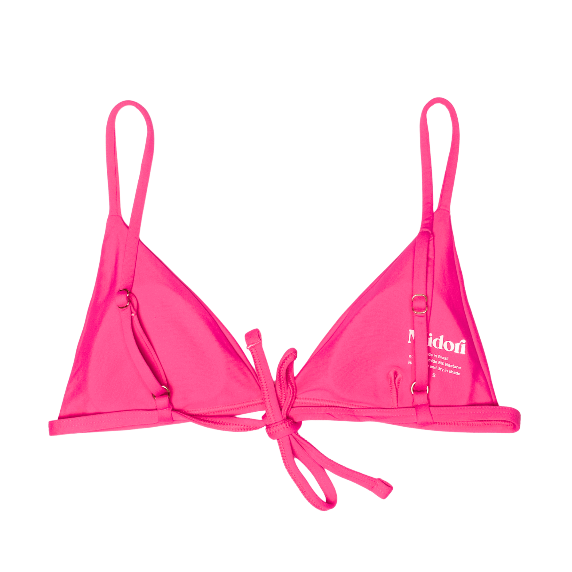 The Tia Top is your new go-to bikini staple—designed with fixed triangle cups that stay put, adjustable shoulder straps, and a tie-back closure for a flexible, secure fit. Removable padding adds versatility, making this top equal parts flattering and functional.